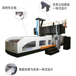 本機采用高剛性龍門框架結構,重要部件均采用樹脂砂鑄件,并經過兩次人工時效處理,具有足夠的靜動剛性和良好的精度保持性。